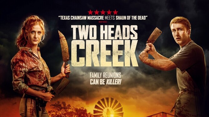 Synopsis: Frightfest Presents and Signature Entertainment present TWO HEAD CREEK, a cannibalistic tale of Brits abroad, and a very witty slice of shocks and horror, starring Kathryn Wilder (All is True) and Stephen Hunter (The Hobbit Trilogy). After the death of their adoptive mother, a shy butcher and his drama queen sister leave the UK and adventure to Australia in search of their biological mother, but the local townsfolk of Two Heads Creek are hiding a dark secret: the pair must reconcile their differences to fight for their lives in this playfully dark comedy-horror. The BBQ is lit and it’s kill-or-be-killed in this hilarious, once-in-a-lifetime trip, also starring Gary Sweet (Wolf Creek) and Kerry Armstrong (Lantana). Two Heads Creek comes from the producers of Better Watch Out.