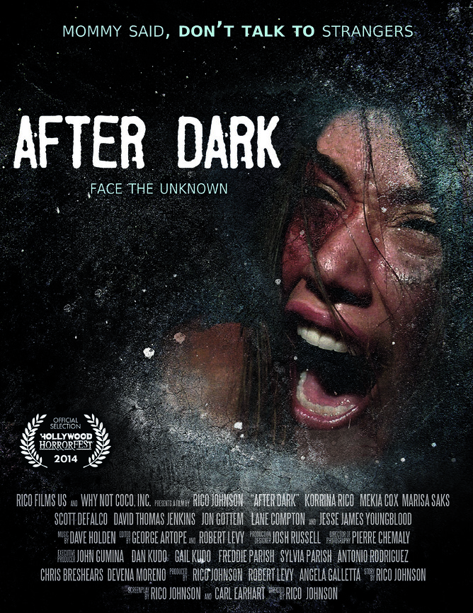 AFTER DARK is directed by Rico Johnson, written by Carl Earhart, Rico Johnson and stars Mekia Cox, Korrina Rico, Marisa Saks, Lane Compton, David Thomas Jenkins, Charlize Diaz De Leon.