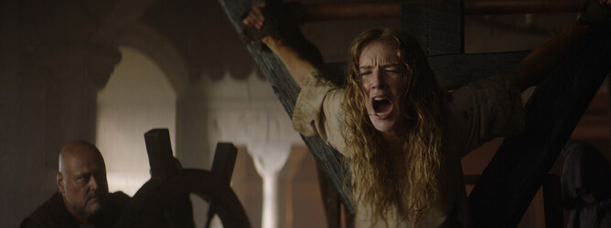 Neil Marshall’s sixth feature film takes us back to the bleak godfearing times of black death, political upheaval and religious infighting for the UK’s troubled soul. It stars Marshall’s co-writer, Charlotte Kirk as Grace, the grieving wife, struggling to make ends meet without her man to work the land. She is desperate to keep a roof over her head and terrified authorities will take her new born when the laird’s lacky, Pendleton, insinuates he’ll happily take other forms of payment. She offers him enough jewellery to cover six months, but he has no other intentions than having her. She fights back and for striving to keep her independence, she is tagged a witch, separated from her child and jailed. Enter the deliciously evil Moorcroft (Sean Pertwee), literally twirling his waxed moustache with the spirit of Vincent Price, as the inquisitor tasked with extracting her confession. He tells Pendleton: “London is lost. 1000s have fled to the country. It’s as if the day of judgement has finally arrived.” A statement about the black death that feels unnervingly prescient as we attend Frightfest from our homes.