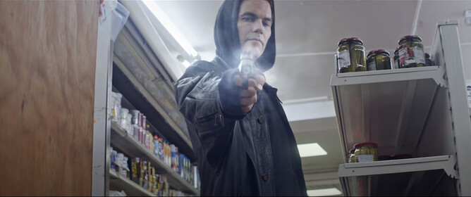 The film chronicles, and is narrated by Caster (Alex Mills), a feral and homeless orphan as he navigates the London criminal underworld in search of belonging, love, and family he was deprived of when his parents were killed. The film opens in the middle of an execution where hitman, Milo (Ian Reddington), takes pity on and spares the life of the young Caster (Badger Skelton), imploring the boy to remember Milo for saving his life. A fast forward in time to Caster as an adult, he is homeless, drinking heavily and confrontational, living in an opaquely fabled London. By chance Caster is reunited with Milo, who offers a certain stability by presenting Caster with a chance if he successfully completes a small-time drug deal. Things do not go to plan, initiating a sprawling, crawl through drug deals, killings, revenge, and possible redemption for Caster as he seeks a return to a familial existence. Caster’s growing relationship with Milo maintains a certain violent ambivalence As with Red Devil, the narrative is littered with burlesque characters that Caster encounters as he makes his way through what can only be described as a Wizard of Oz trip through London gangland. One such character is Jean-Baptiste Philippe, a local drug lord, played with more than a touch of darkly comic relish and some interesting hair action by Steve Guttenberg. Yes, narrative is not the only fantastical element of ORIGINAL GANGSTER. It is a surprising casting choice, and one cannot help turning their thoughts to Mickey Rourke and his luscious locks from The Wrestler.