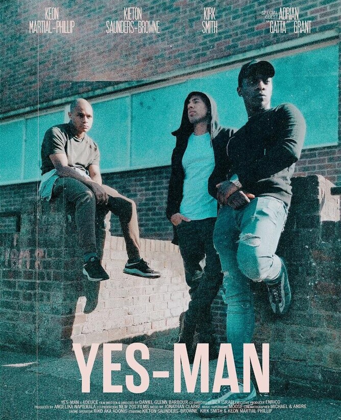 YES-MAN stars Kieton Saunders-Browne, Keon Martial-Phillip, Kirk Smith, Adrian 'Gatta' Grant, Emma Elizabeth Wright, Rufus Shaljean & Nash Hernandez.