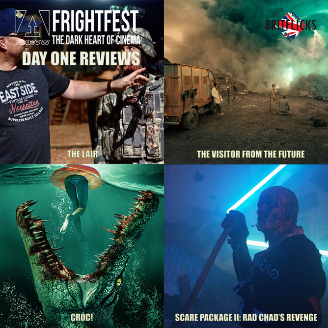 BritFlicks' Stuart Wrighttakes a look at Day One at Arrow Video FrightFest, with film reviews of THE LAIR, THE VISITOR FROM THE FUTURE, CROC! and SCARE PACKAGE II: RAD CHAD’S REVENGE.