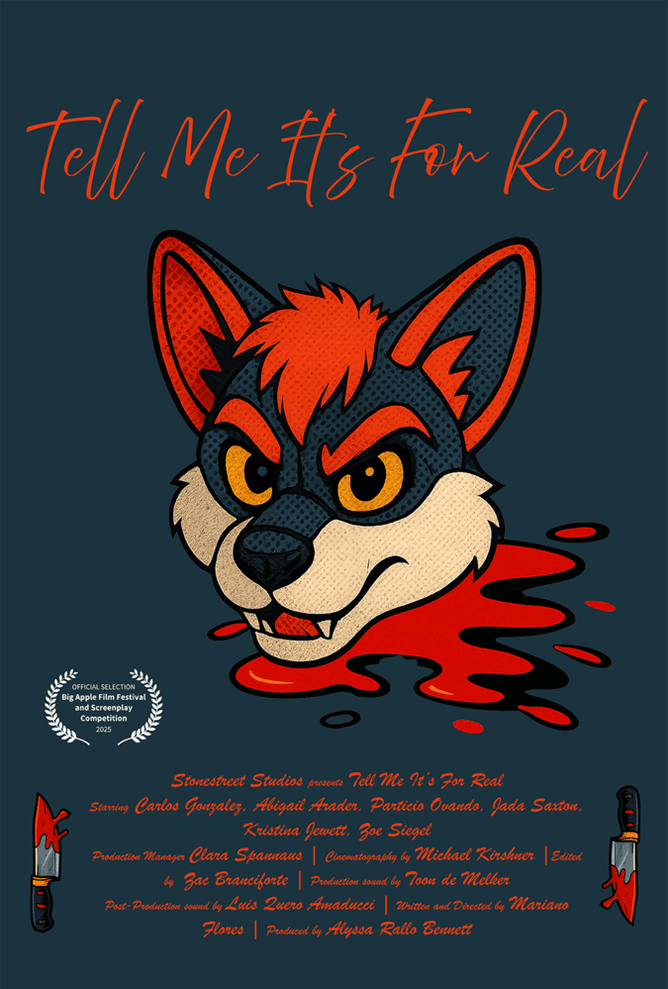 'TELL ME IT’S FOR REAL' is a bold, pop-punk musical about an outcast Furry navigating identity, love, and belonging after falling for a girl hiding her own secret. Directed by Mariano Flores and produced by Alyssa Rallo Bennett, the cast includes Carlos Navas, Abigail Arader, Particio Ovando, Jada Saxton, Kristina Jewett, and Zoe Siegel.
