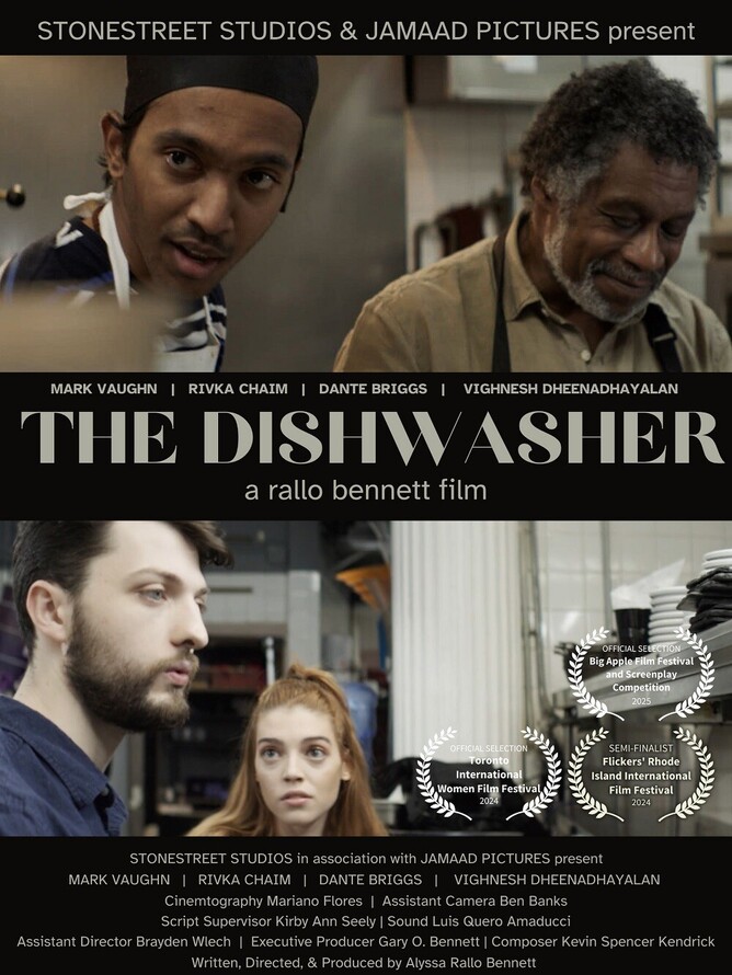 In a bustling restaurant, one unexpected phone call throws an entire shift into chaos — until an unassuming team member steps up. Directed by Alyssa Rallo Bennett, and starring Mark Vaughn, Rivka Chaim, Dante Briggs, and Vighnesh Dheenahayalan, this workplace dramedy delivers energy and heart.