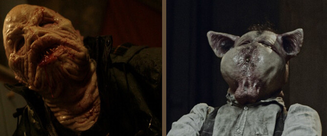 The fish mutants in THE BARGE PEOPLE and the pig-headed muzzies in BULLETS OF JUSTICE.
